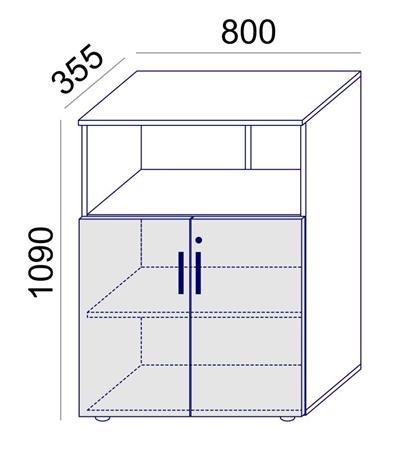 3 rendező magas, kombinált szekrény, ajtós és nyitott polcos részekkel