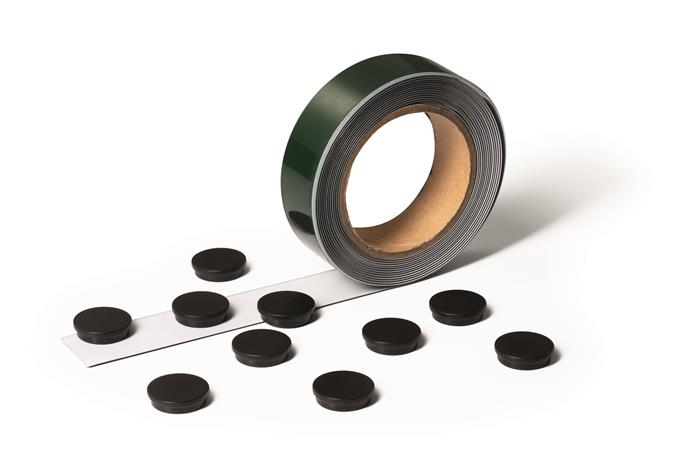 Fémszalag, öntapadó, 3,5 cm x 5 m, DURABLE, fehér, 10 db mágnessel
