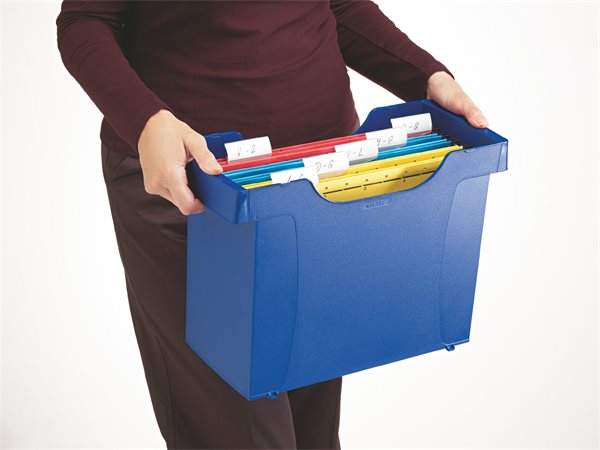 klasszikus formájú függőmappatartó, amely fogantyújának köszönhetően könnyen hordozható