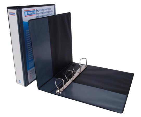 Gyűrűs könyv, panorámás, 4 gyűrű, D alakú, 63 mm, A4, PP, DONAU, fekete