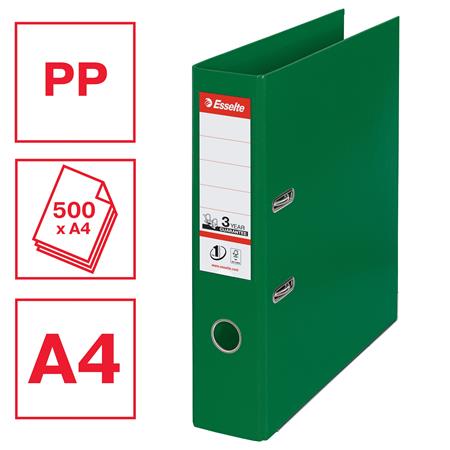 KezdőlapIrodaszerekIratrendezés, archiválásIratrendezőkIratrendező, 75 mm, A4, PP, élvédő sínnel, ESSELTE "Standard", zöld