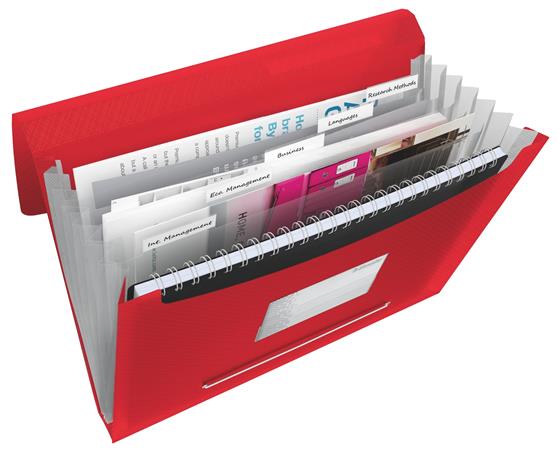 Harmonikamappa, A4, PP, 6 rekeszes, ESSELTE "Vivida", piros