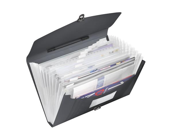 Harmonikatáska, A4, PP, 12 rekeszes, ESSELTE "Vivida", fekete