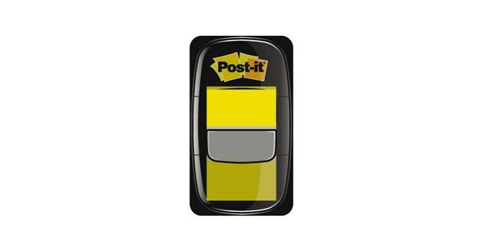 Jelölőcímke, műanyag, 50 lap, 25x43 mm, 3M POSTIT, sárga