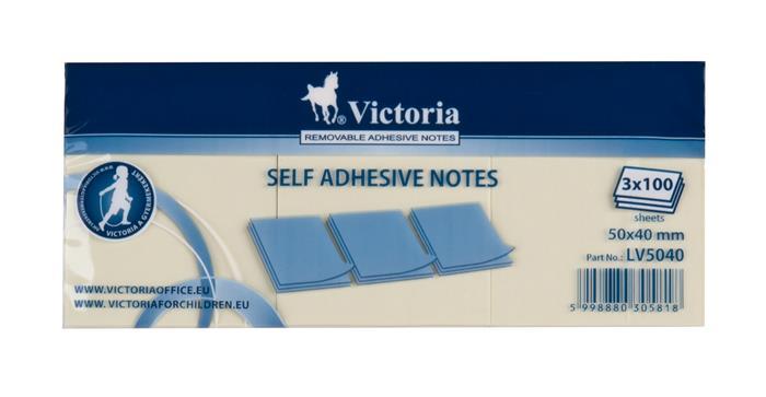 Öntapadó jegyzettömb, 50x40 mm, 100 lap, VICTORIA OFFICE, sárga