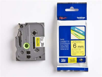 Feliratozógép szalag, 6 mm x 8 m, BROTHER, "TZe-611" sárga-fekete