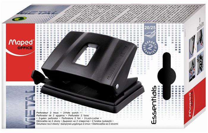 Lyukasztó, kétlyukú, 25 lap, fém, MAPED "Essentials 25", fekete