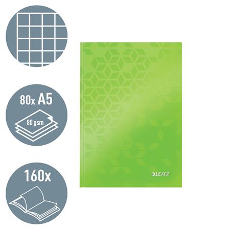 Beíró, A5, kockás, 80 lap, keményfedeles, LEITZ "Wow", zöld