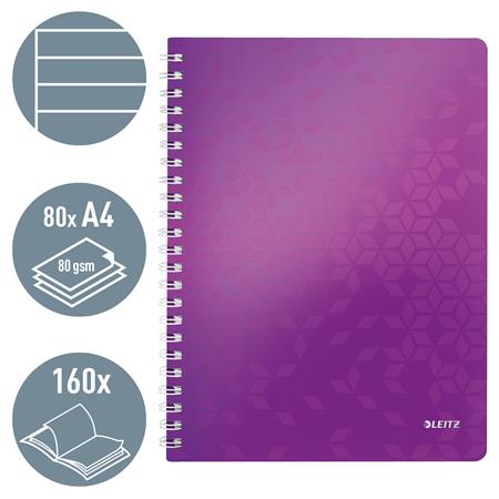Spirálfüzet, A4, vonalas, 80 lap, LEITZ "Wow", lila