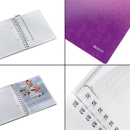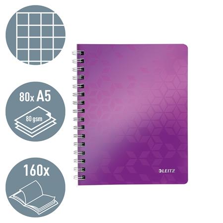 Spirálfüzet, A5, kockás, 80 lap, LEITZ "Wow", lila