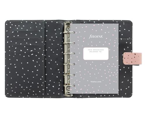 Kalendárium, gyűrűs, betétlapokkal, pocket méret, FILOFAX, "Confetti", rózsakvarc