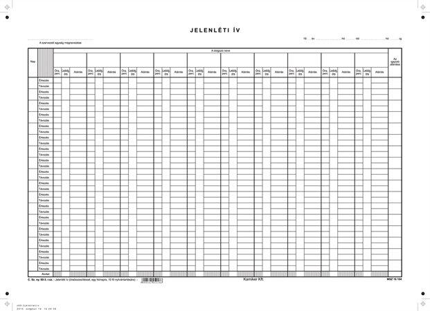 Nyomtatvány, jelenléti ív, 1 hónap-10 fő, A3, VICTORIA PAPER "C.60-3"