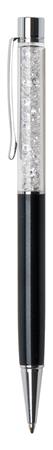 Golyóstoll, fekete, felül fehér SWAROVSKI® kristállyal töltve, 14 cm, ART CRYSTELLA®