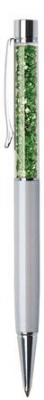 Golyóstoll, krémfehér, felül zöld SWAROVSKI® kristállyal töltve, 14 cm, ART CRYSTELLA®