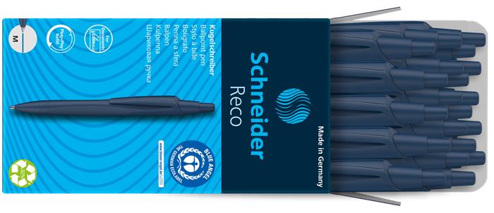 Golyóstoll, 0,5 mm, nyomógombos, sötétkék színű tolltest, SCHNEIDER "Reco", kék