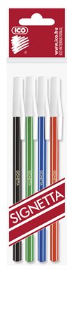 Golyóstoll készlet, 0,7 mm, kupakos, ICO "Signetta", 4 különböző szín
