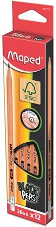 KezdőlapIrodaszerekÍrószerekGrafit- és színes ceruzákGrafitceruza radírral, 2B, háromszögletű, MAPED "Black`Peps"