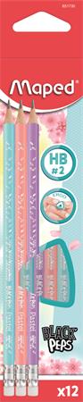 Grafitceruza radírral, HB, háromszögletű, MAPED "Black`Peps Pastel", vegyes pasztell színek