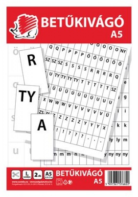 A csomagban 2 db A5-ös betűkivágó lap található, az egyik oldalon nagy betűk, a másik oldalon a kisbetűk találhatók.
