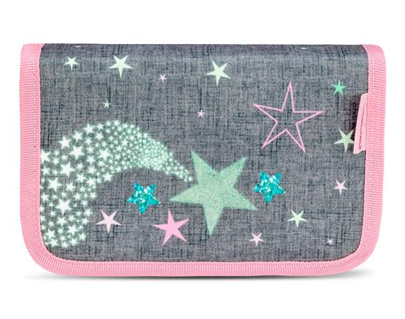 Tolltartó, klapnis, cipzáras, BELMIL "Shine Bright", szürke-rózsaszín, csillagok