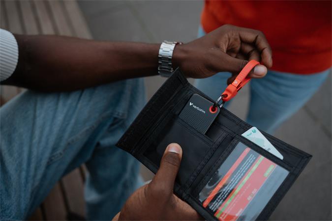 A Verbatim Pocket SSD az ultravékony és könnyű kialakításának köszönhetően tökéletes hordozhatóságot biztosít – elfér a hátsó zsebben.