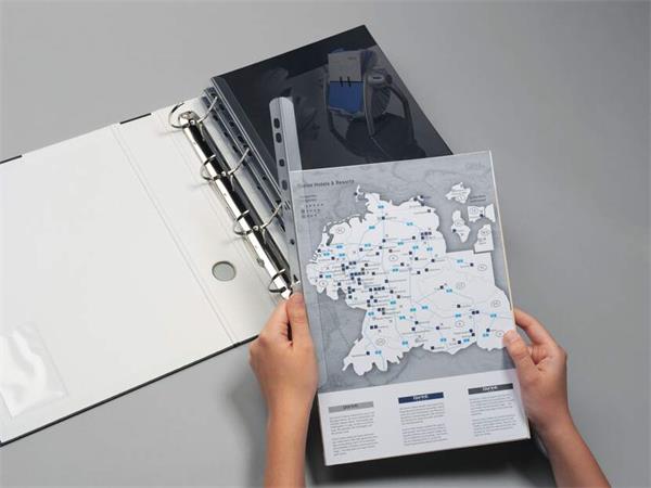 Iratsín, a dokumentumok lyukasztás nélküli lefűzésére, lekerekített sarkokkal, melyek megkönnyítik a papír behelyezését
