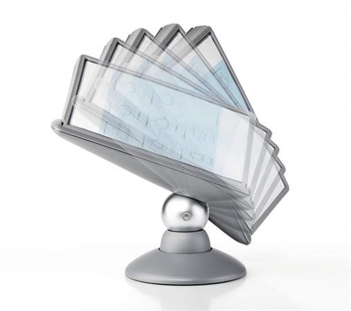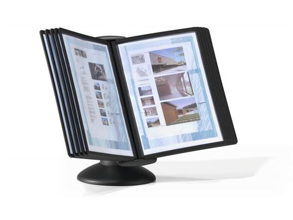 Bemutatótábla tartó, asztali, 10 db bemutatótáblával, DURABLE, "Motion", fekete