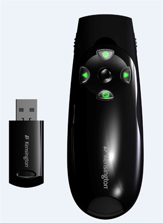 Prezentációs távirányító, zöld lézer, vezeték nélküli, KENSINGTON
