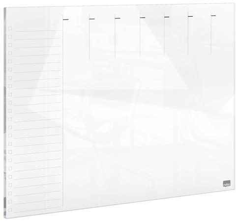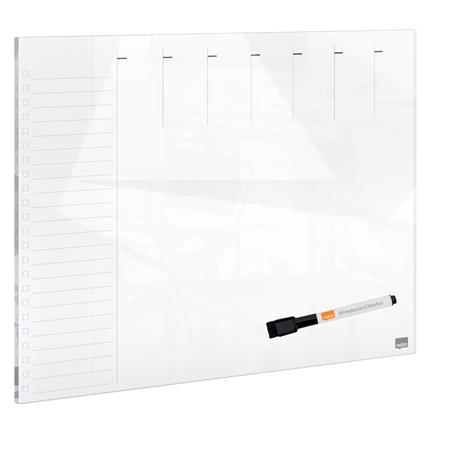 Tervezőtábla, üveg, mágneses felület, heti, 43x56 cm, NOBO "Home", fehér