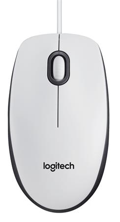 Egér, vezetékes, optikai, normál méret, USB, LOGITECH "M100", fehér