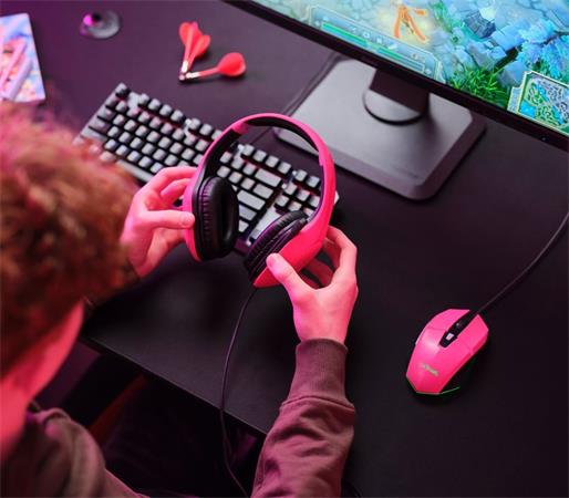 Fejhallgató, mikrofonnal, gaming, TRUST "GXT415 Zirox", rózsaszín