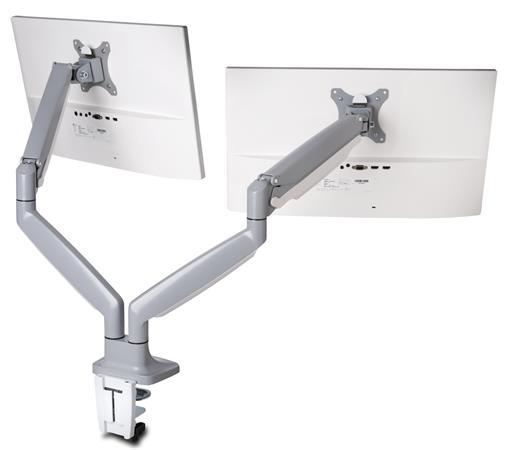 A „SmartFit” rendszer segítségével személyes ígényeknek megfelelően beállítható kétkarú monitortartó Egy mozdulattal állítható karok Állítható magasság: 170-505 mm között 180 fokban forgatható kar 90 fokban állítható dőlésszög Ideális 13-32" méretig és 9 kg súlyig 75x100 VESA szabvány Kábelvezető rendszer Egyszerű beüzemelés