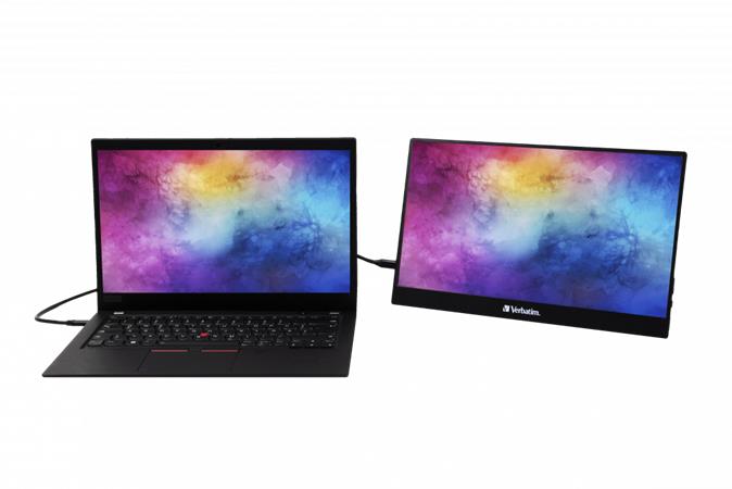 A Verbatim hordozható monitor extra dimenziót ad a munkához vagy a játékhoz. Használhatja laptopja második képernyőjeként, vagy nagyméretű kijelzőt biztosíthat telefonja, táblagépe vagy hordozható játékrendszere számára.