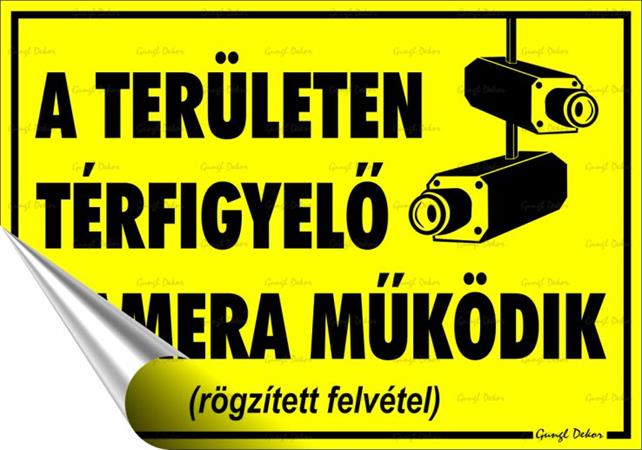 A területen térfigyelő kamera működik (rögzített felvétel) információs matrica