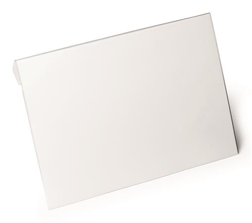 -átlátszó PET kemény fóliából készült, hajtással ellátott irattartó tok, mely alkalmas kartondobozok, dobozok vagy más tárolóedények fölé függesztésre